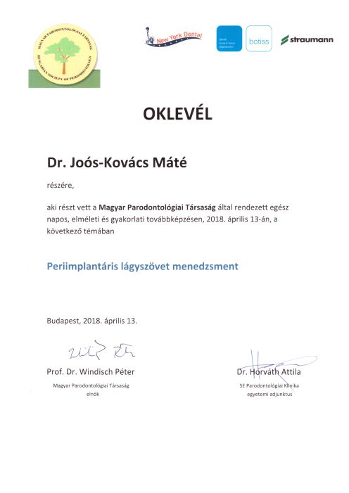 - 2018 Magyar Parodontológiai Társaság - Periimplantáris lágyrész menedzsment