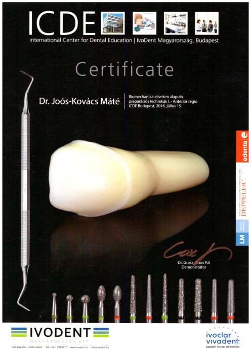 - 2016 ICDE - Biomechanikai elveken alapuló preparációs technikák. Anterior régió