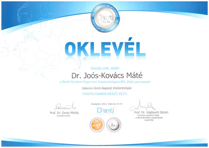 - 2013 Denti System - Fogorvosi Implantológiai Kft. - Intenzív Denti alapozó implantológiai tanfolyam
