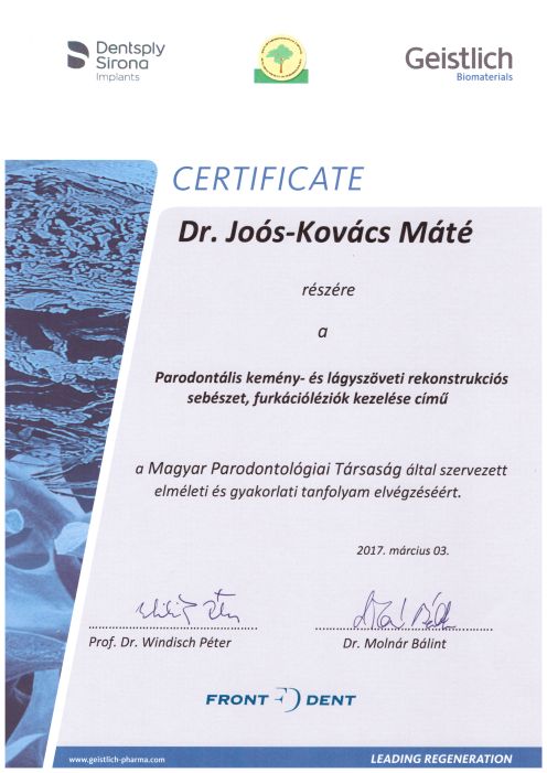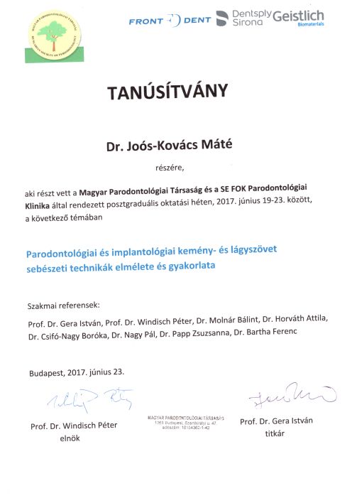 - 2017 Magyar Parodontológiai Társaság - Parodontális kemény- és lágyszöveti rekonstrukciós sebészet, furkációléziók kezelése