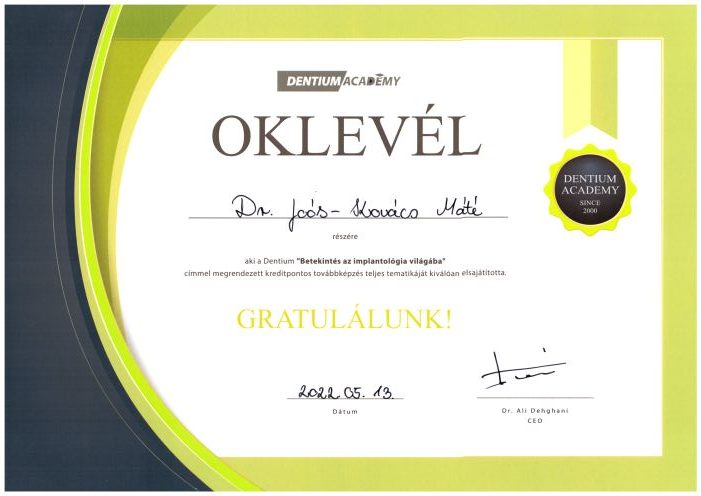 - 2022 Dentium Academy - Fogászati implantológia