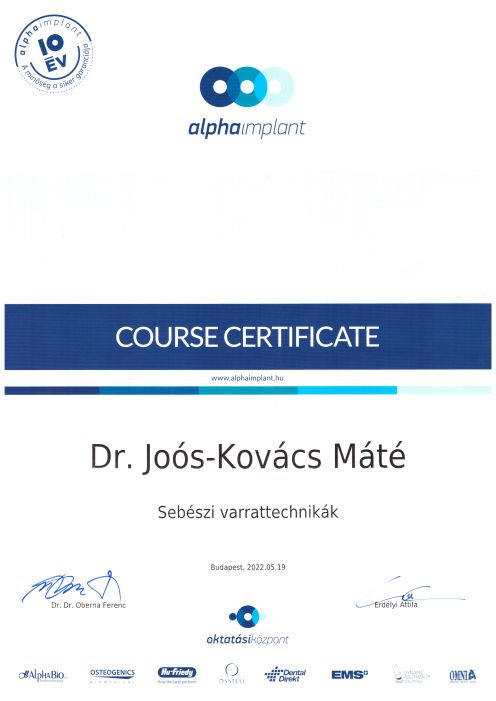 - 2022 Alpha Implant Oktatási Központ - Sebészi varrattechnikák