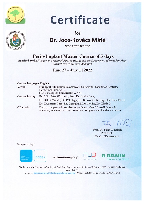 - 2022 Semmelweis Egyetem, Magyar Parodontológiai Társaság - Perio-Implant Master Course